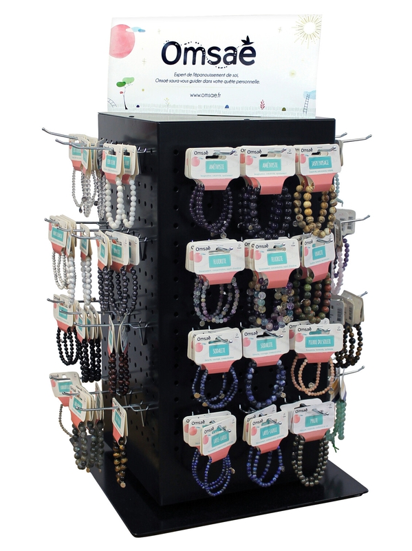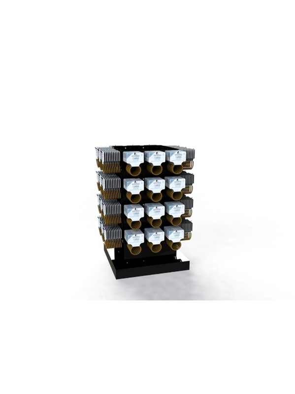 Tourniquet de comptoir en métal noir, pivotant. 48 broches picots zinguées avec embouts noirs de 80 mm utile fournies. Format : 38 x 38 x 73,5 cm.