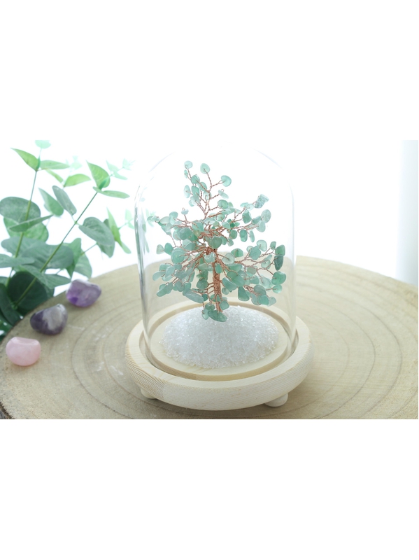 Arbre du bonheur sous cloche en aventurine verte Omsaé