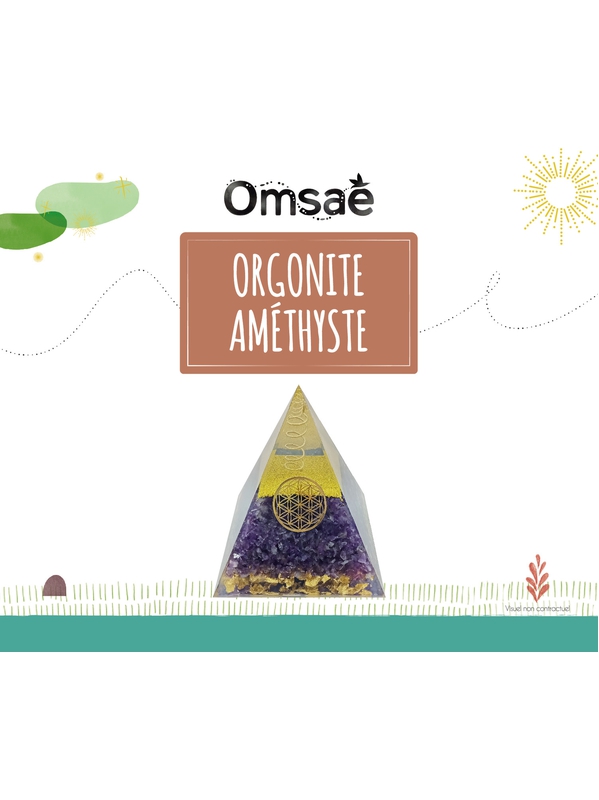 Pyramide orgonite en améthyste avec symbole fleur de vie Omsaé