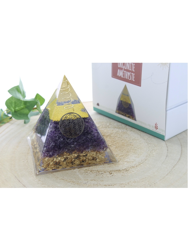 Pyramide Orgonite Améthyste Fleur de vie