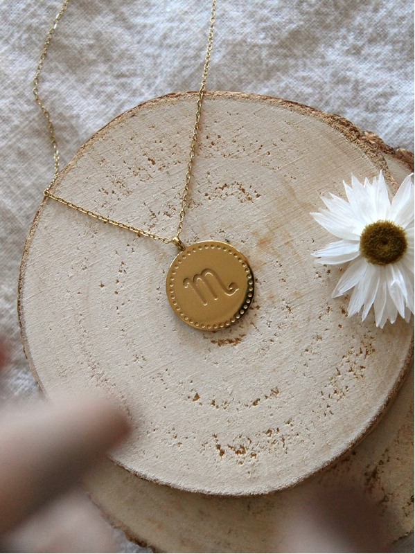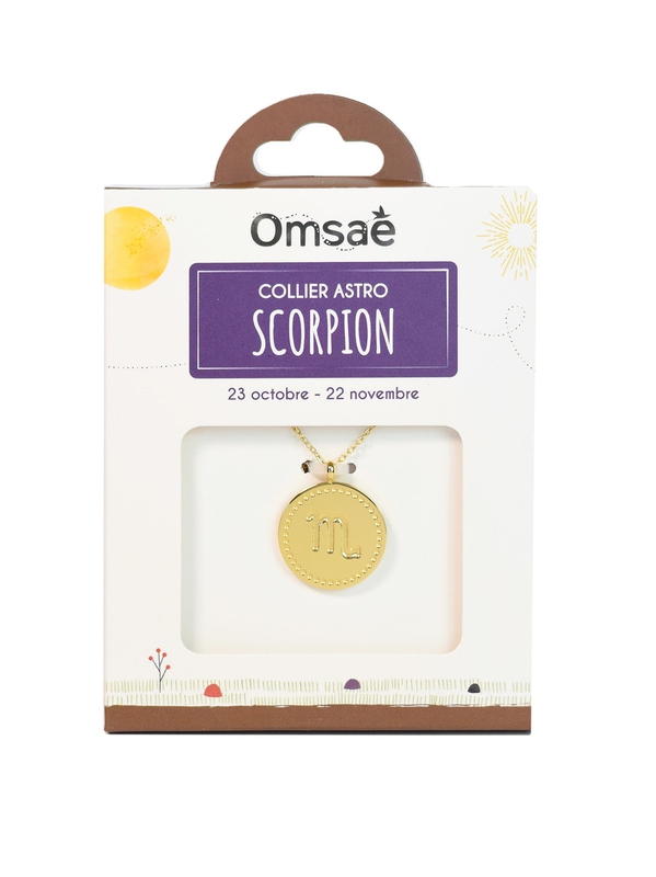 Collier composé d'une médaille gravée et d'une chaîne en acier inoxydable. Médaille gravée au recto et au verso avec le signe et la constellation Scorpion. Chaîne ajustable d'une longueur de 40-45 cm.