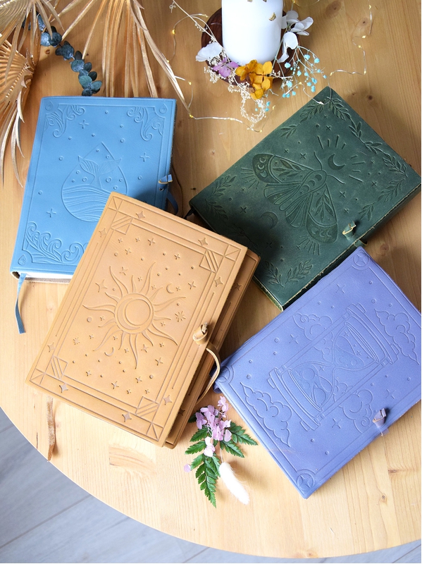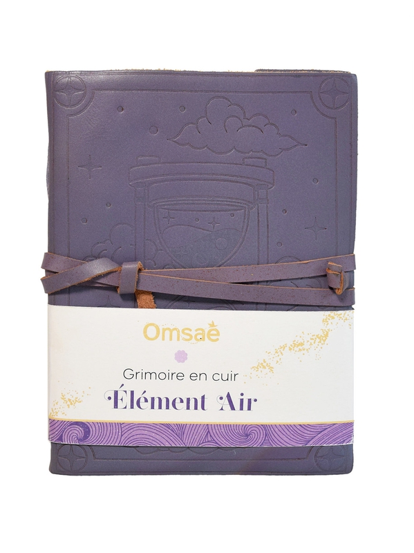 Grimoire en cuir de buffle : élément Air, environ 100 pages blanches en papier recyclé. Fabriqué à la main en Inde.