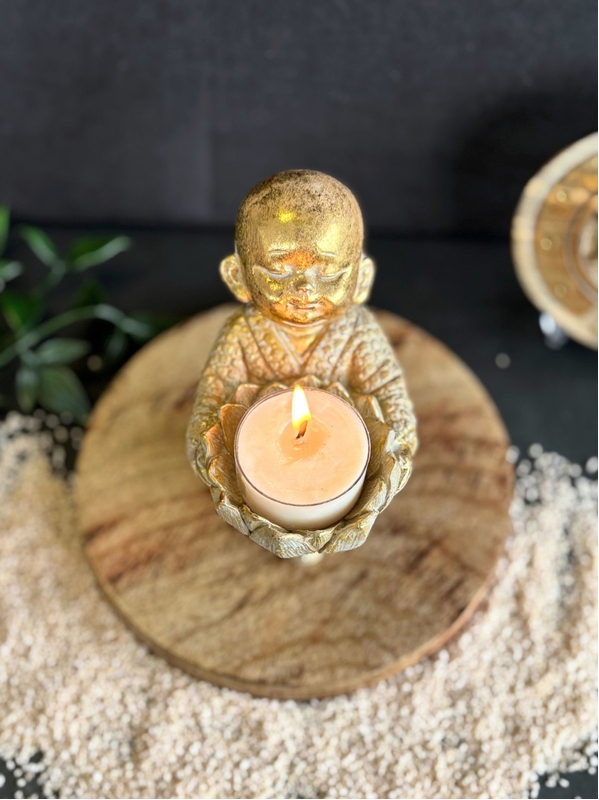 Porte-bougie Moine en Lotus 12,5 cm - Résine - Doré