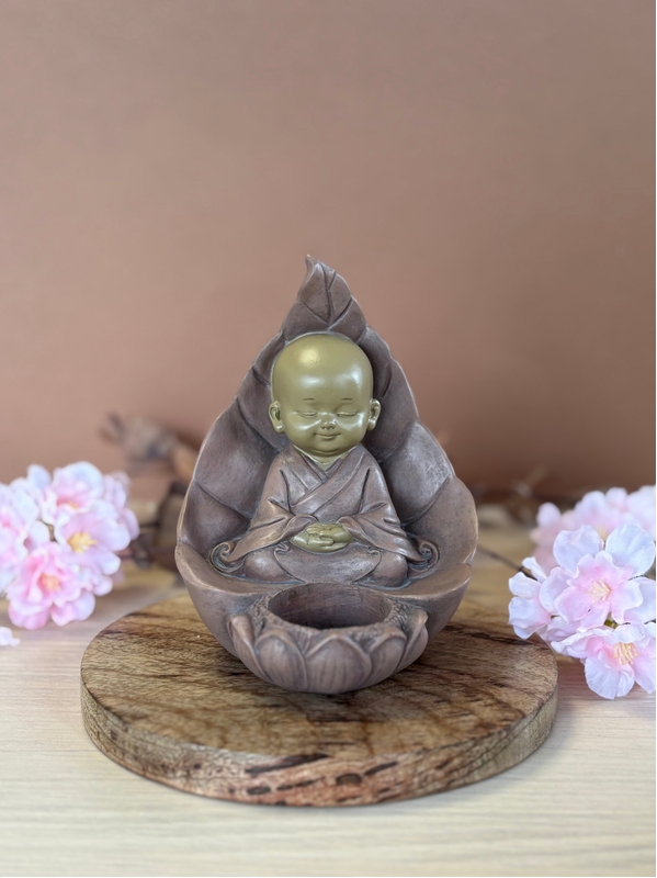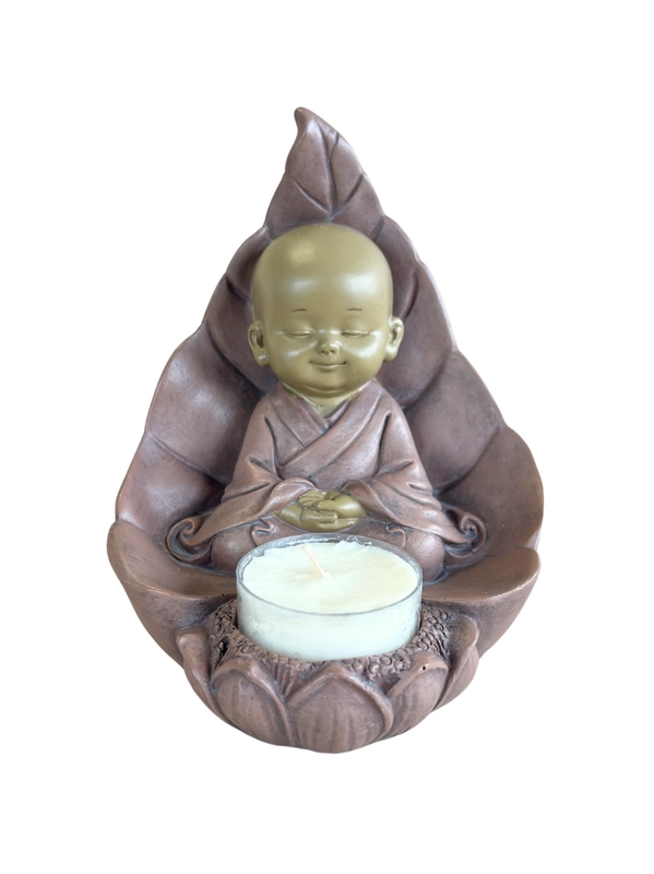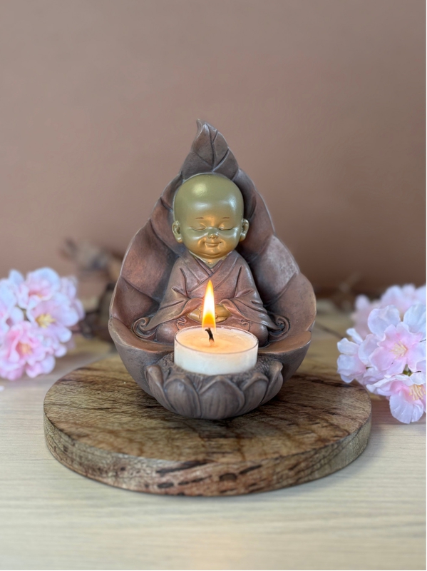 Porte-bougie Moine Méditatif 13 cm en Résine - Rouge