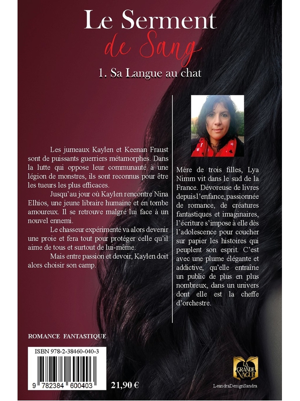 Les jumeaux Kaylen et Keenan Fraust sont de puissants guerriers métamorphes. Dans la lutte qui oppose leur communauté à une légion de monstres, ils sont reconnus pour être les tueurs les plus efficaces. Jusqu’au jour où Kaylen rencontre Nina Elhios, une jeune libraire humaine et en tombe amoureux. Il se retrouve malgré lui face à un nouvel ennemi. Le chasseur expérimenté va alors devenir une proie et fera tout pour protéger celle qu’il aime de tous et surtout de lui-même. Mais entre passion et devoir, Kaylen doit alors choisir son camp.Nimm Lya Voir moins