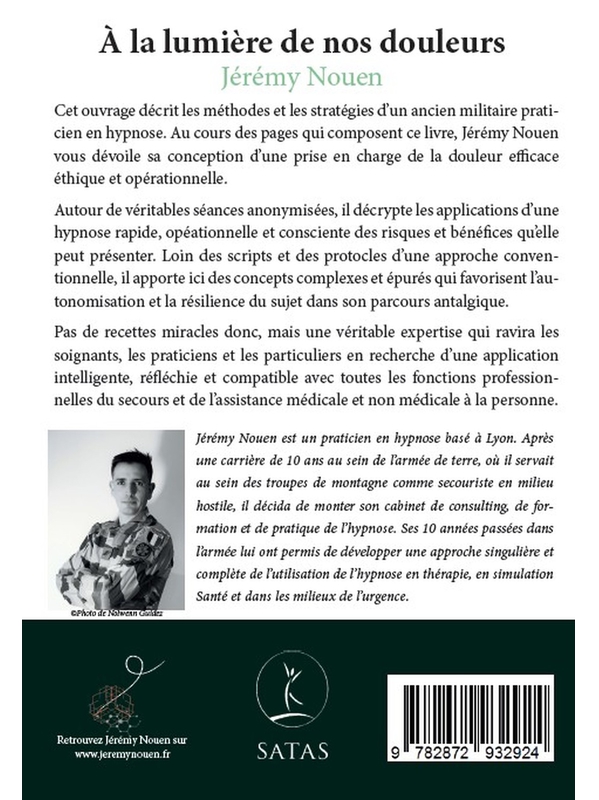 Cet ouvrage décrit les méthodes et les stratégies d’un ancien militaire praticien en hypnose. Au cours des pages qui composent ce livre, Jérémy Nouen vous dévoile sa conception d’une prise en charge de la douleur efficace, éthique et opérationnelle. Autour de véritables séances anonymisées, il décry Voir plus