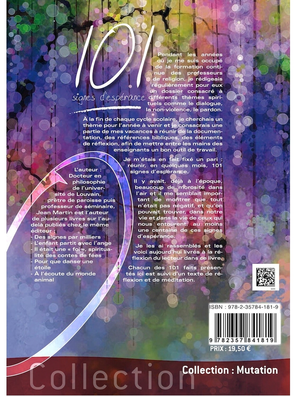 Dans 101 signes d’espérance, Jean Martin rassemble des récits authentiques, simples et profondément humains, collectés au fil de plusieurs décennies. L’ouvrage propose un voyage au plus près des gestes discrets, des petites victoires intérieures et des solidarités silencieuses qui illuminent nos vie Voir plus