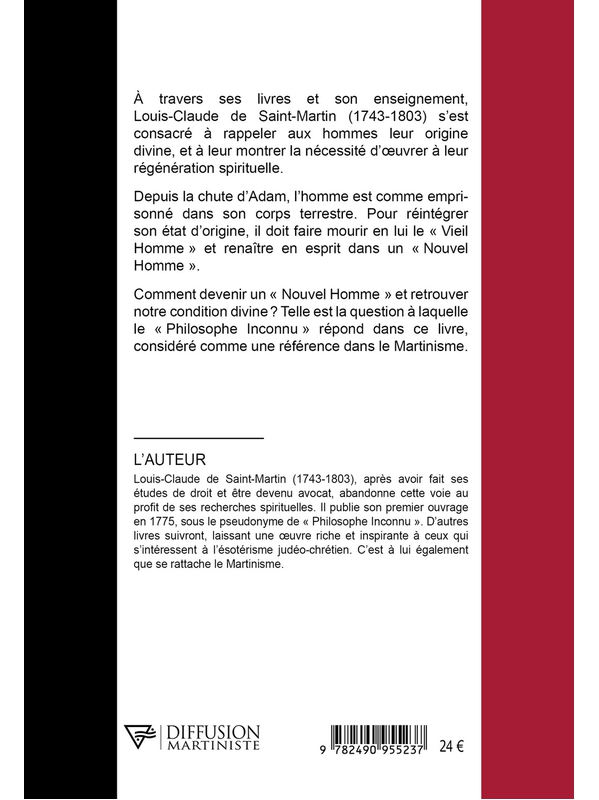 Louis-Claude de Saint-Martin (1743-1803), également connu sous le pseudonyme de « Philosophe Inconnu » a composé en 1790 cet ouvrage qui constitue une oeuvre majeure pour tous ceux qui s'intéressent à la pensée saint-martinienne et en premier chef pour les martinistes. L'idée centrale est que Dieu n Voir plus
