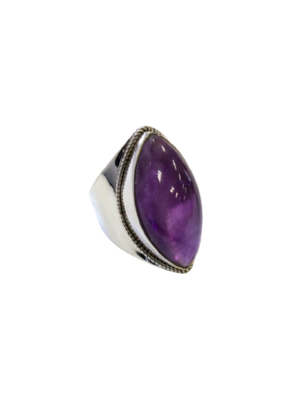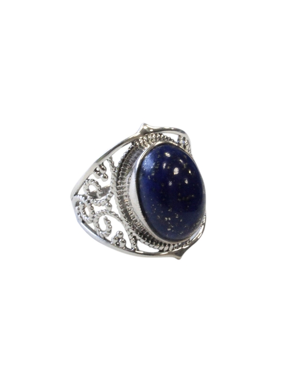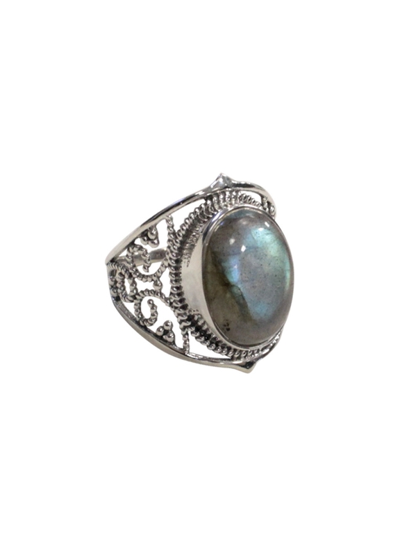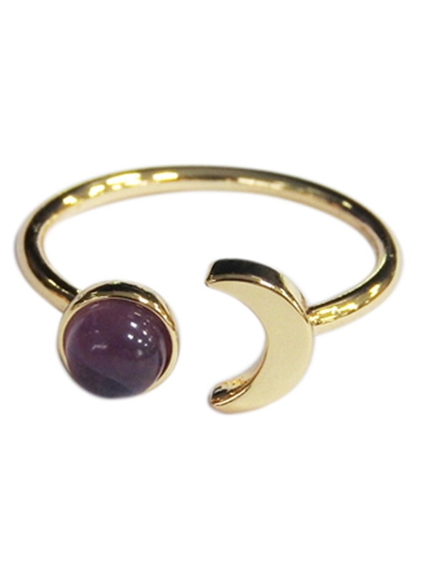 Bague fine et ajustable avec une pierre d'Aigue-Marine et une lune à la finition dorée. L'Aigue-Marine clarifie l’expression et permet d