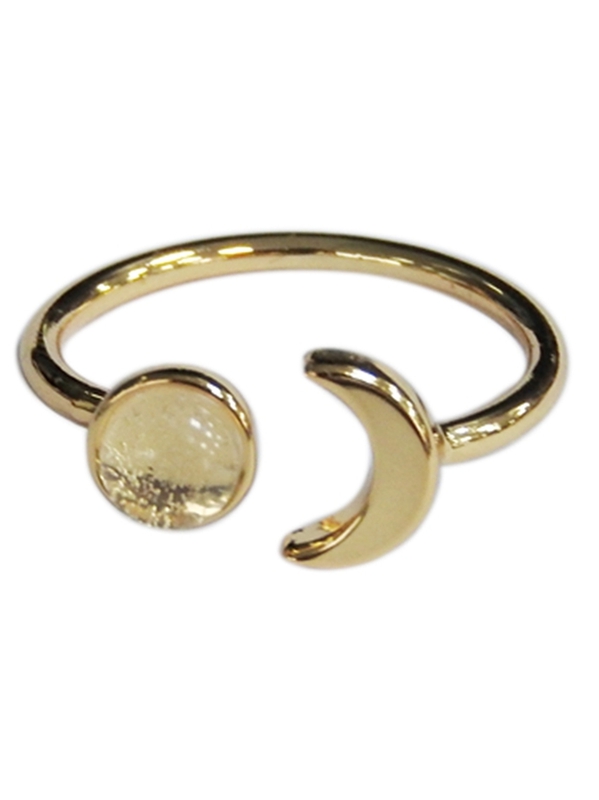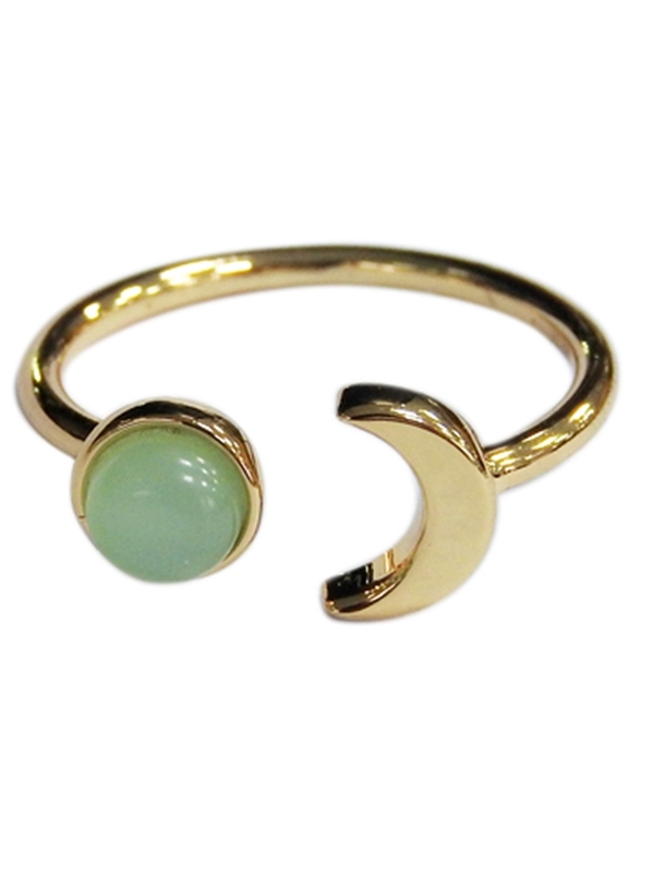 Bague ouverte ajustable avec une pierre d'Aigue-Marine et une lune dorée