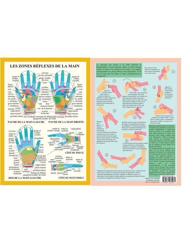 Au recto, les chakras, leurs caractéristiques et les associations avec les zones réflexes. Au verso, trois tableaux de correspondance (pierres, arômes, métaux, thérapies alternatives, repos, géographie, musique, yoga, profession) et avec notamment les aspects psychologiques. Planche couleur A4 doubl Voir plus