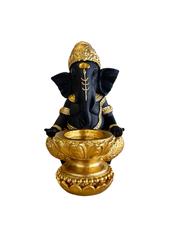 Porte-bougie Ganesh 17,5 cm en Résine - Doré