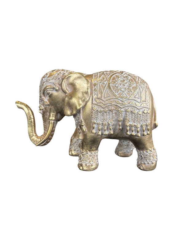 Statuette Eléphant Trompe en bas 20 cm en Résine - Doré